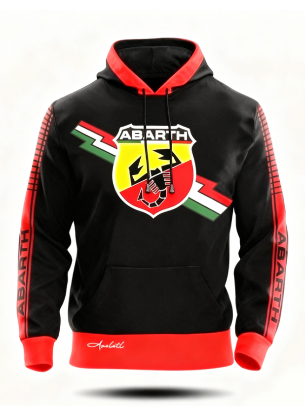 - Espalda: Ícono del escorpión Abarth en tamaño grande, símbolo de la potencia y la identidad de la marca