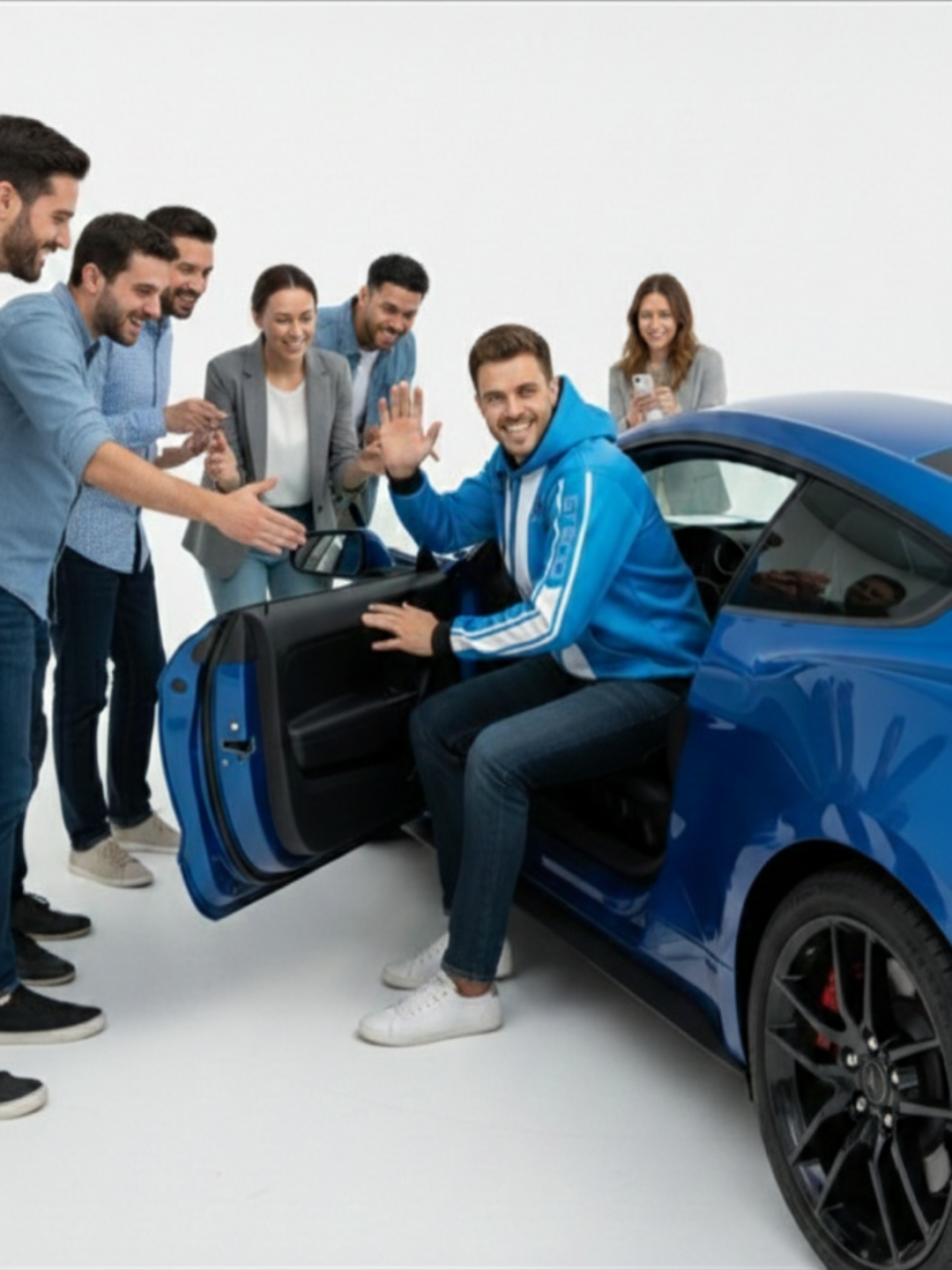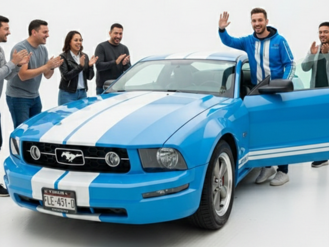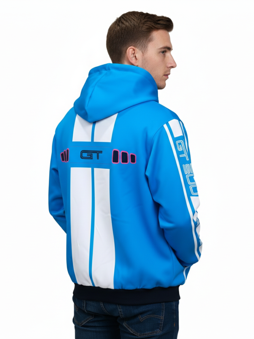 Su vibrante color azul cielo, complementado con las legendarias franjas blancas de competición que recorren el torso, captura la mirada de todos, tal como lo hace un deportivo en la pista.