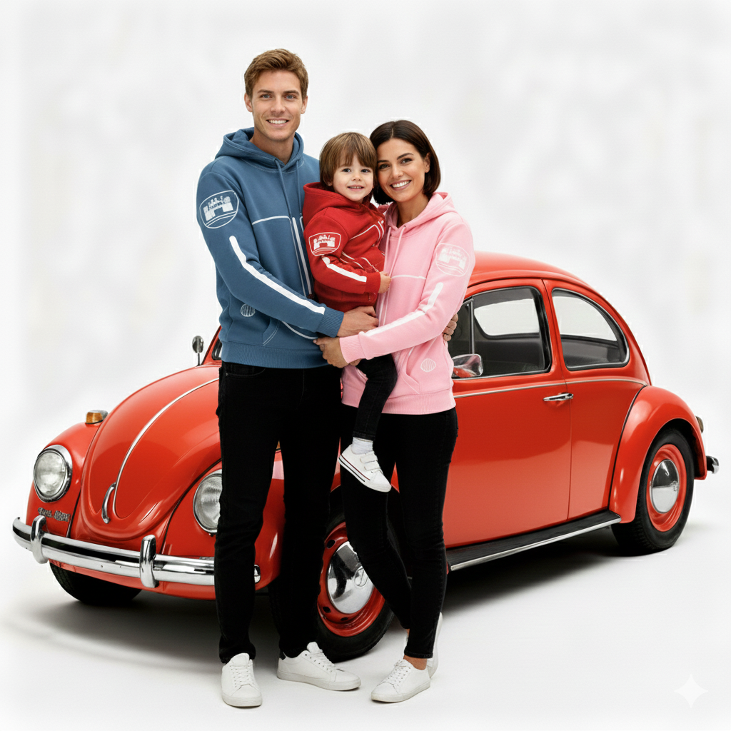 El Volkswagen Vocho llegó a México hace décadas, pero el modelo Oval 54 se consolidó como parte del tejido social y familiar del país. Más que un automóvil, se convirtió en compañero de viajes familiares, herramienta de trabajo para sostener hogares, medio de transporte para llevar a los hijos a la escuela y hasta objeto de culto que une a padres e hijos en su pasión por los autos clásicos. El amor de México por el Vocho es inigualable: ha sido testigo de reuniones familiares, viajes de vacaciones, primeros días de clase y momentos que definen la identidad mexicana. Esta sudadera en edición familiar es un tributo a ese legado que sigue vivo en cada esquina del país y en el corazón de las familias mexicanas, con el respaldo de Axocatl como símbolo de marca mexicana y calidad en sus productos.