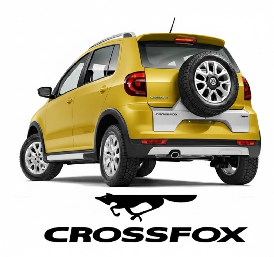 - Espalda: Lleva la icónica representación de una llanta de refacción en la parte superior – un detalle que recuerda a los vehículos de aventura – y justo debajo, el logo tipo del zorro y las letras "Crossfox" en formato destacado, homenaje a su identidad y espíritu explorador.