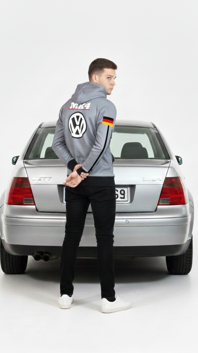 Sudadera exclusiva que rinde homenaje a uno de los modelos más emblemáticos de la gama sedán de Volkswagen en México: el Jetta MK4. Esta edición está diseñada para los coleccionistas y amantes de la marca que reconocen el legado técnico y estético de este automóvil, que marcó una era en el segmento de vehículos compactos premium. Fusiona el diseño distintivo del Jetta MK4 con la durabilidad y confort que demandan los apasionados por los autos clásicos, convirtiéndola en una prenda que representa la pasión por la ingeniería alemana y la cultura Volkswagen en el país. Cada detalle busca honrar la historia, el rendimiento y el estilo que hicieron de este modelo un referente entre los clubes y comunidades de aficionados a la marca.
