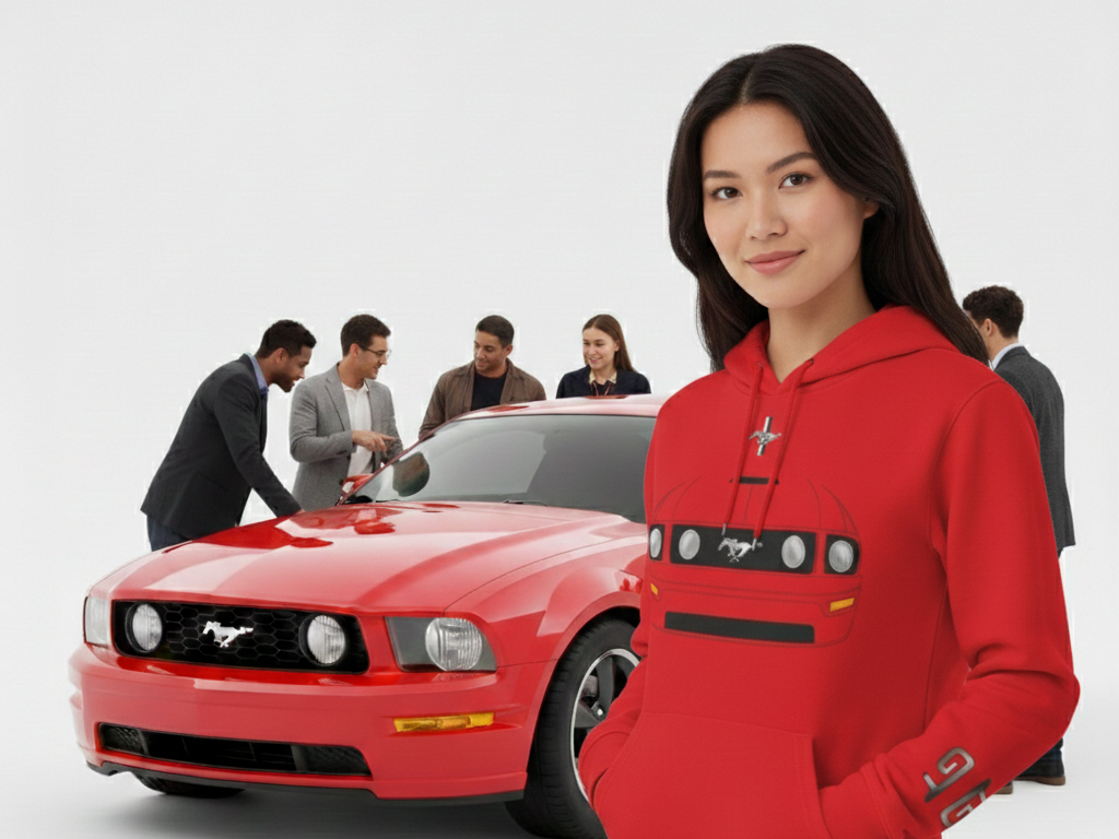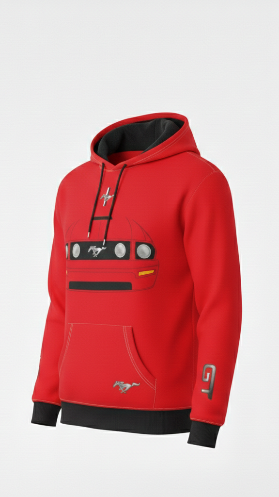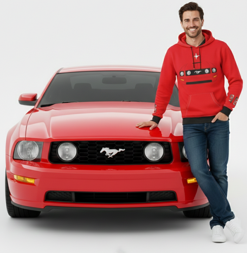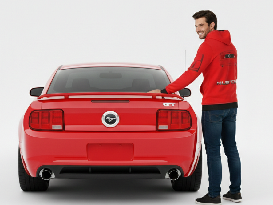 Esta prenda captura la esencia pura de la quinta generación del Mustang (2005-2009). En el frente, destaca el frente agresivo con la parrilla clásica y los faros de niebla, mientras que la espalda presume las inconfundibles calaveras traseras que definieron una época. Es más que ropa; es un tributo portátil a uno de los muscle cars más influyentes de la historia.